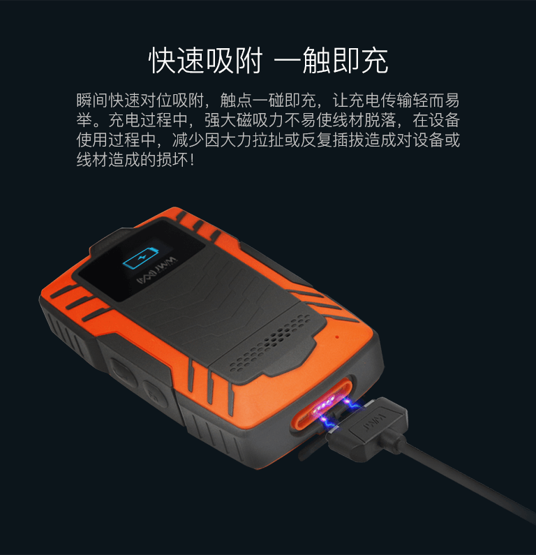 接口瞬間快速對位吸附,觸點一碰即充,讓充電傳輸輕而易舉。充電過程中,強大磁吸力不易使線材脫落,在設備使用過程中,減少因大力拉扯或反復插拔造成對設備或線材造成的損壞!