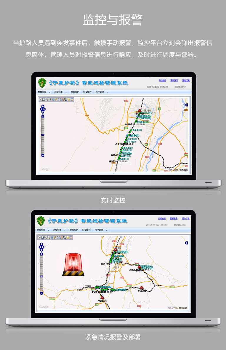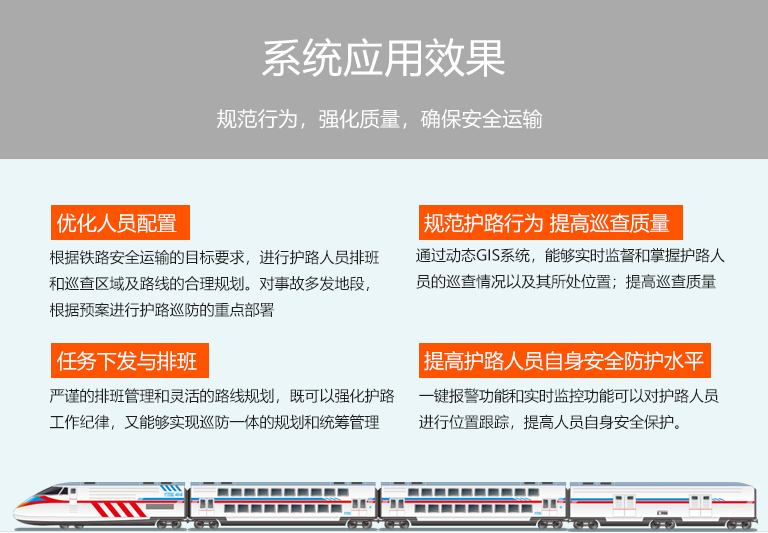 通過《鐵路護(hù)路巡檢管理系統(tǒng)》,規(guī)范專業(yè)護(hù)路隊(duì)伍執(zhí)勤行為,強(qiáng)化執(zhí)勤巡查質(zhì)量,實(shí)現(xiàn)鐵路護(hù)路防控工作科學(xué)